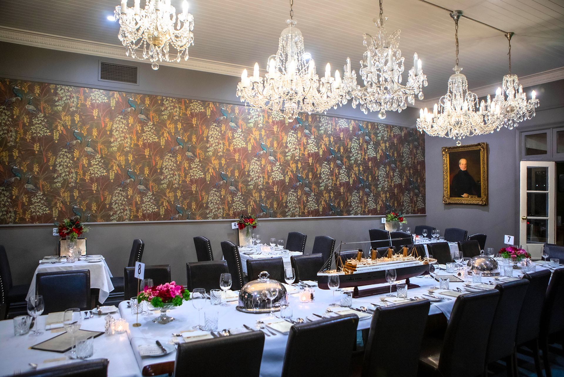 We actually didn’t stay here, we only had dinner. There were 10 of us – 6 adults and 4 children. When we arrived we were given an unexpected tour through all the various sitting rooms that had been recently renovated, and they were wonderful!! Our host pointed out various aspects in each room, from the year a fox was taxidermied to the designer of the magnificent wall paper in the dining room – Catherine Martin (wife of Baz Luhrmann). The meal was superb, the children were invited to use the chess boards when they finished their meals. Next time we will stay overnight. I’m certain it will be great.
